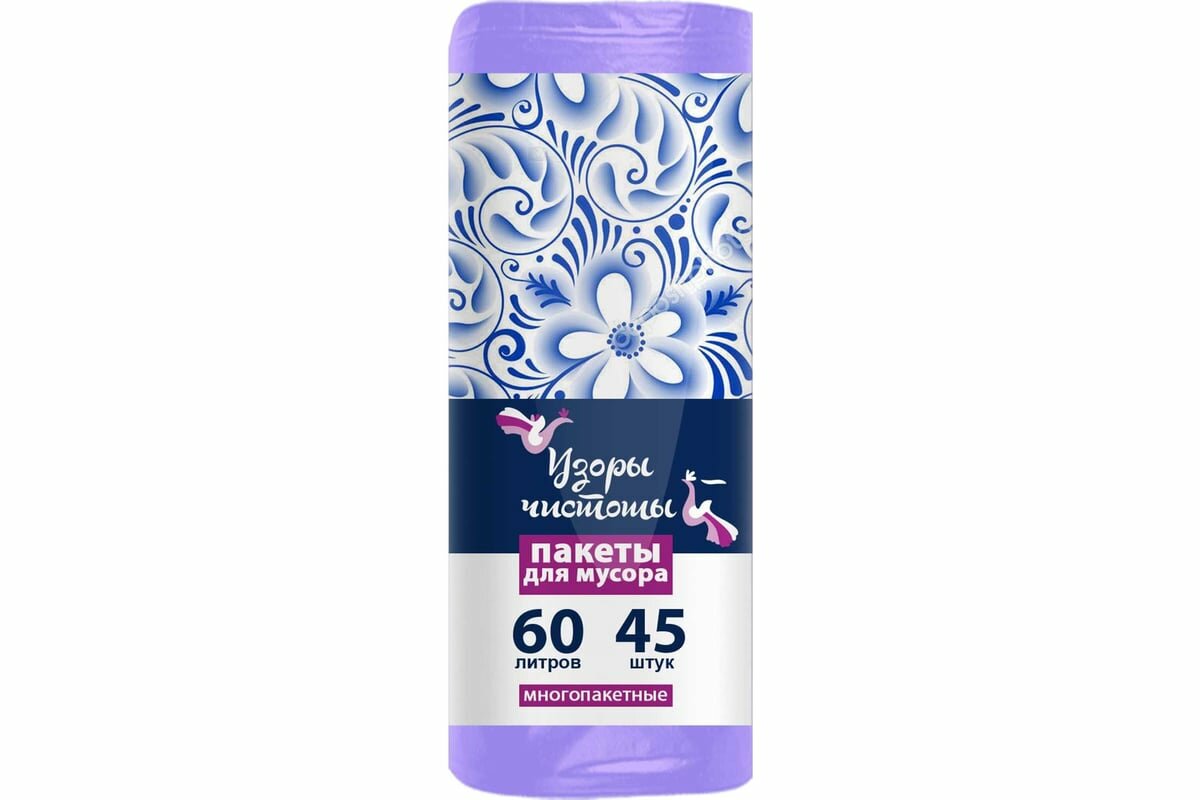 Узоры чистоты Пакеты д/мусора "" 60 л. 45 шт., сиреневые многопакетные МУ4244 интересное: