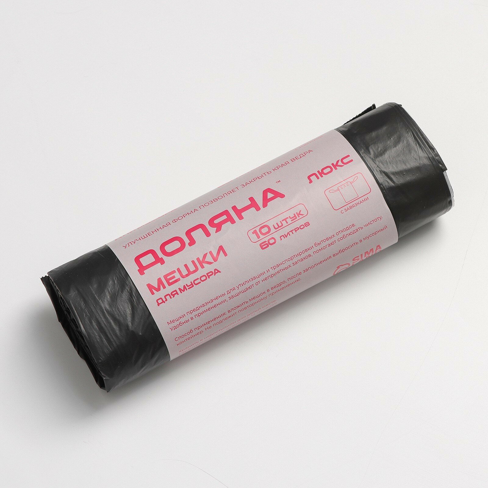 Мешки для мусора с завязками Доляна «Люкс», 60 л, 25 мкм, 60×70 см, ПВД , 10 шт, цвет чёрный