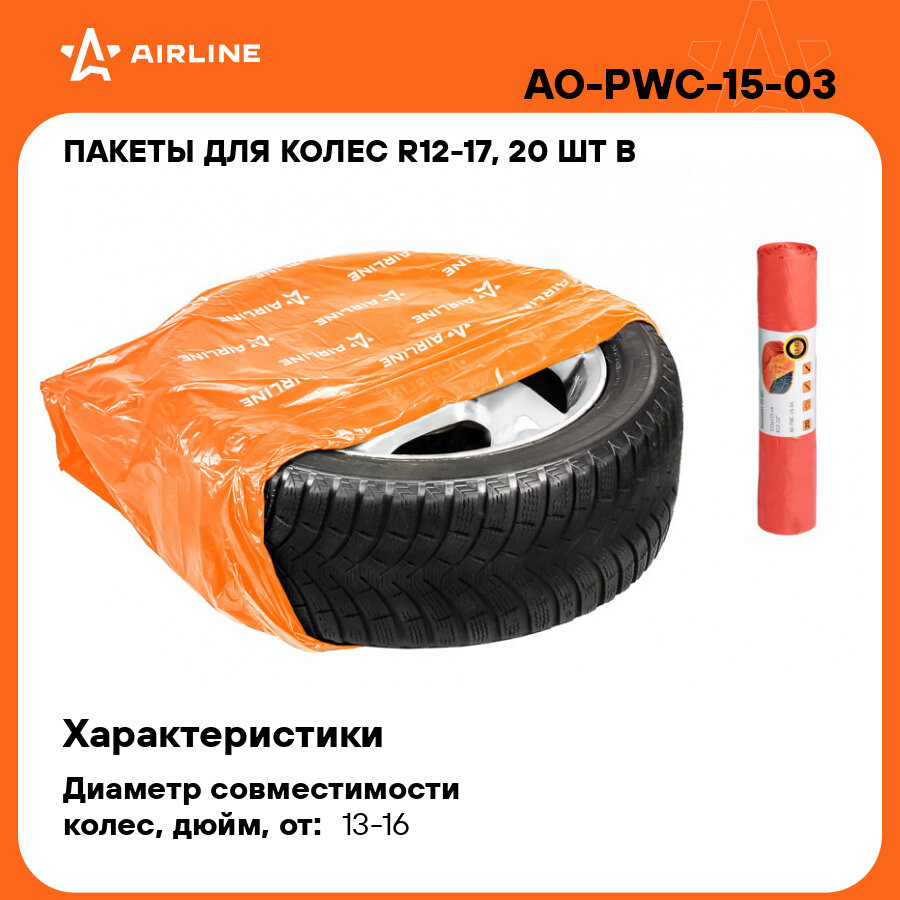 Купить Пакеты для колес R12-17, 20 шт в рулоне, 100х100 см, 18 мкм, оранж. AO-PWC-15-03 AIRLINE