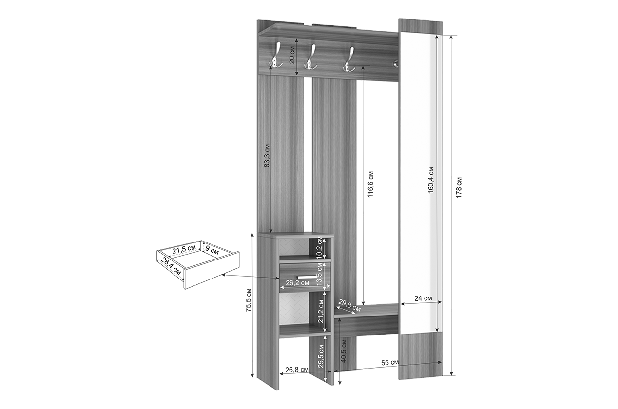 | Плюсы: | Хорошая прихожая , можно собрать на обе стороны (в плане зеркала). Понятная инструкция , простая в сборке. |