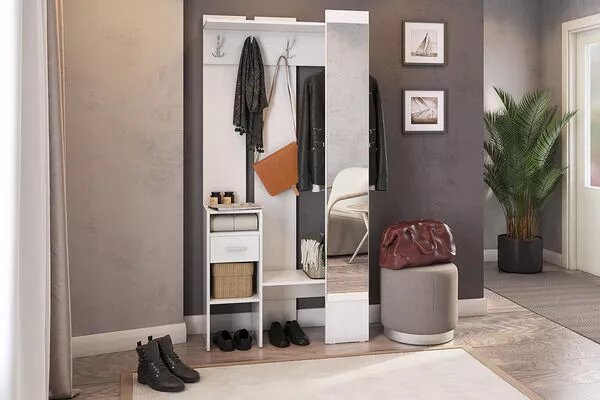 Узкая прихожая "Агата", цвет Белый рамух, 85*34*185 см., Mebelson интересное: