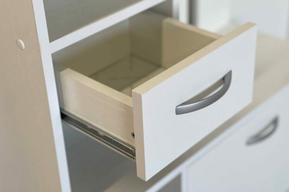 | Минусы: | Лично по мне не самое удачный вариант выдвижного механизма для ящика с мелочами |