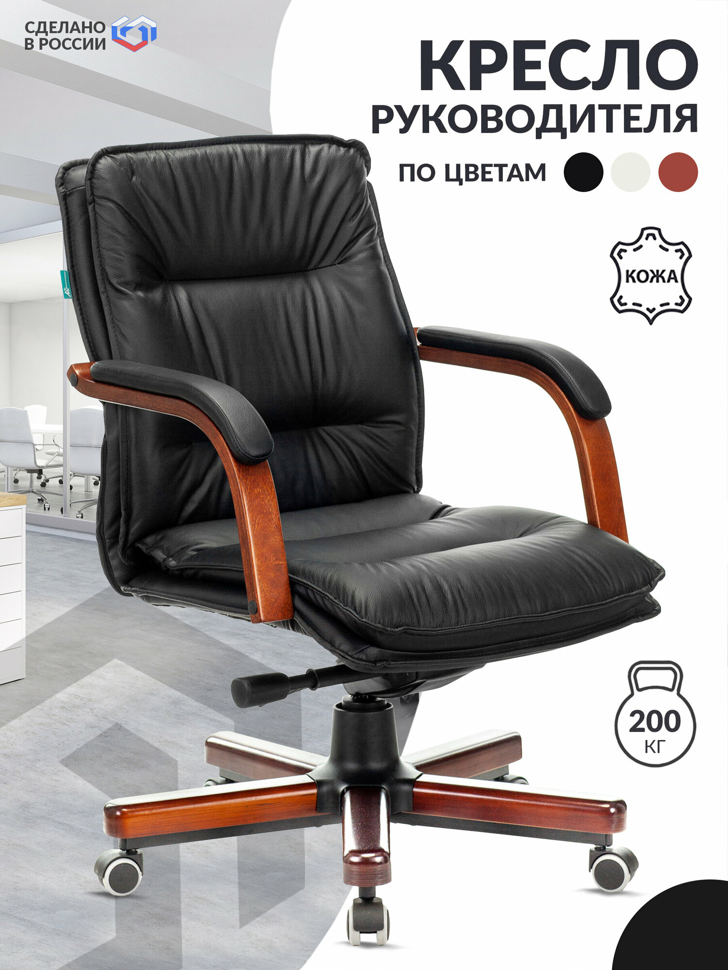 Кресло руководителя Бюрократ T-9927WALNUT-LOW черный кожа низк.спин. крестов. металл/дерево / Компьютерное кресло для директора, начальника, менеджера