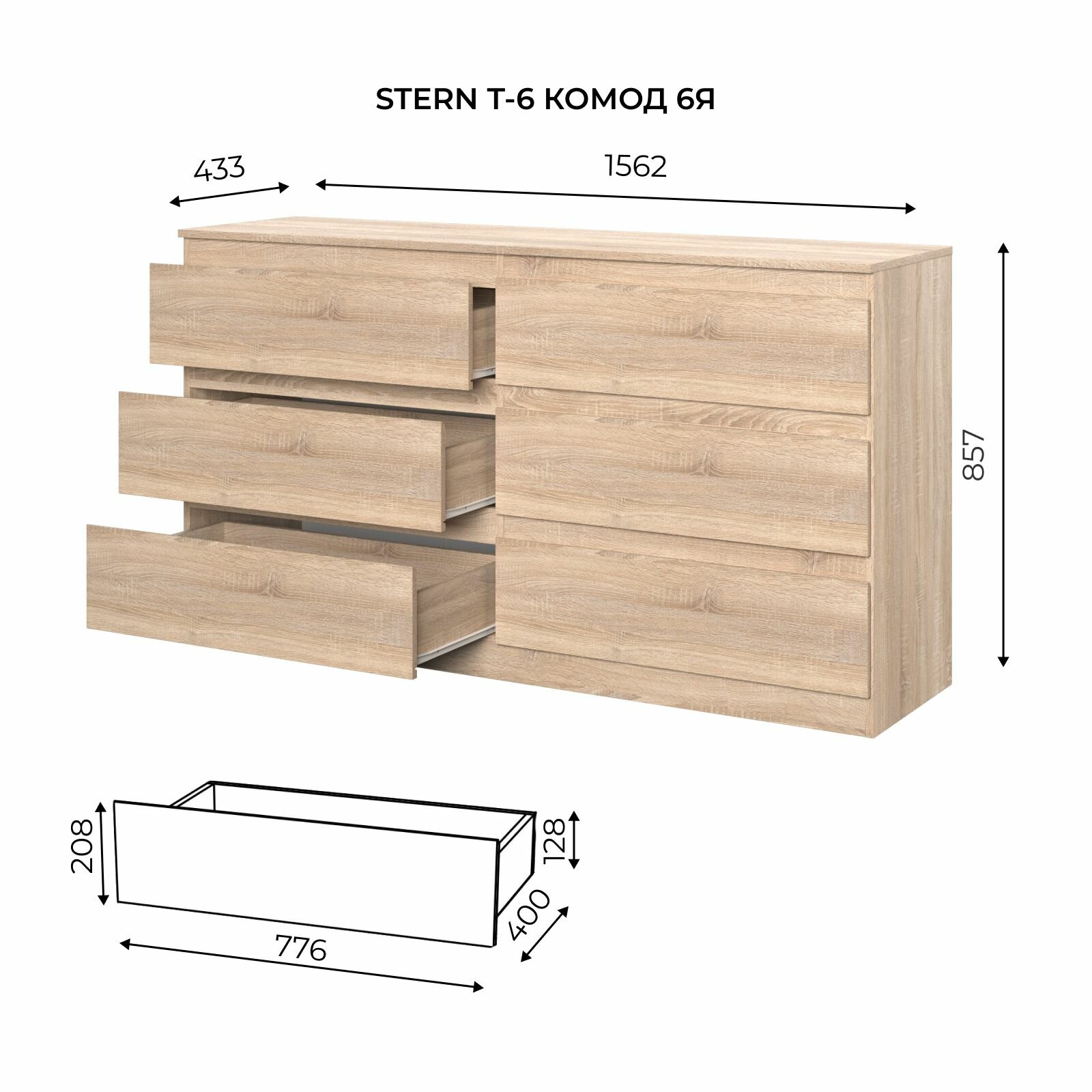 Купить Штерн (STERN) комод Т-6, 156,2 х 85,7 х 43,3 см, ЛДСП, 6 ящиков, Дуб Сонома