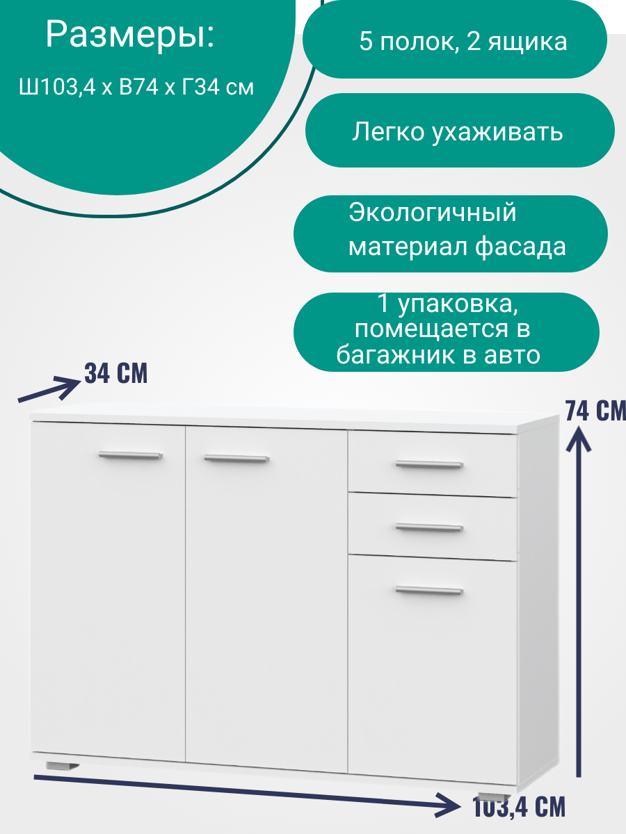 Комод НК-мебель FUN КД-4, 4 ящика, 3 дверцы, ЛДСП, 137,8 х74 х 34 см, Белый 71336953