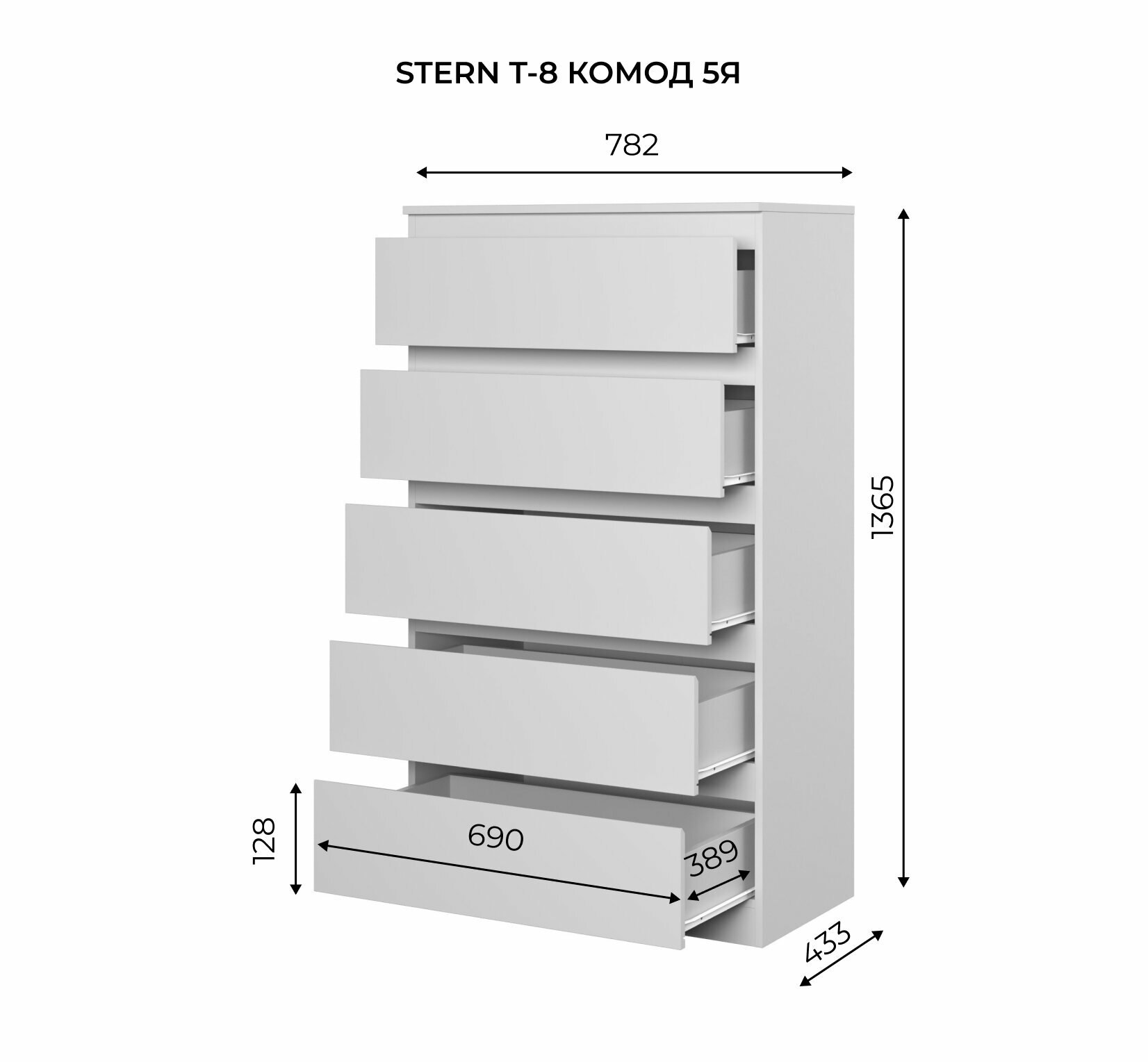 Штерн (STERN) комод Т-6, 156,2 х 85,7 х 43,3 см, ЛДСП, 6 ящиков, Белый