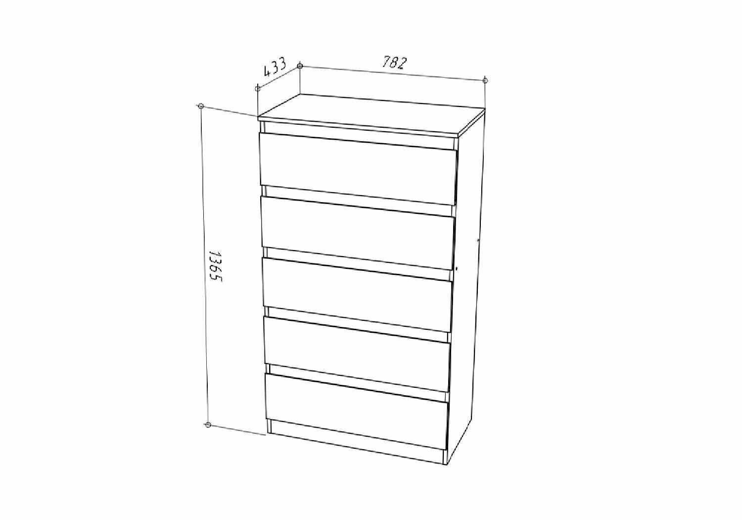 Штерн (STERN) комод Т-8, 78.2 х 136.5 х 43,3 см, ЛДСП, 5 ящиков, Дуб Сонома