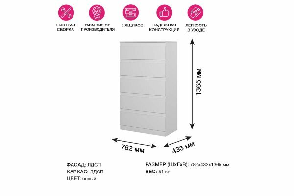 Купить Комод НК-мебель STERN Т-8 (16мм) 5я Белый (72676244) (2 кор.)
