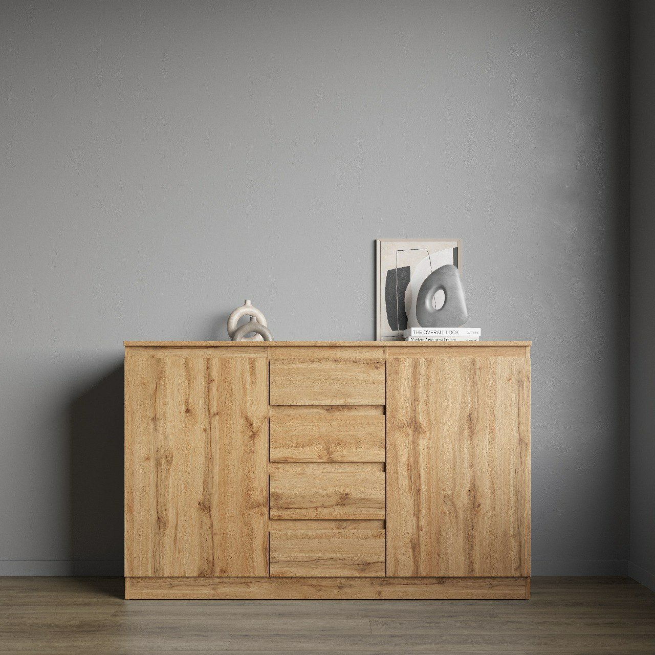 Комод Stern Т 4, комод с выдвижными 4 ящиками и 2 дверцами деревянный, Дуб Вотан, 140,3 х 89,5 х 43,3 см (ШхВхГ)