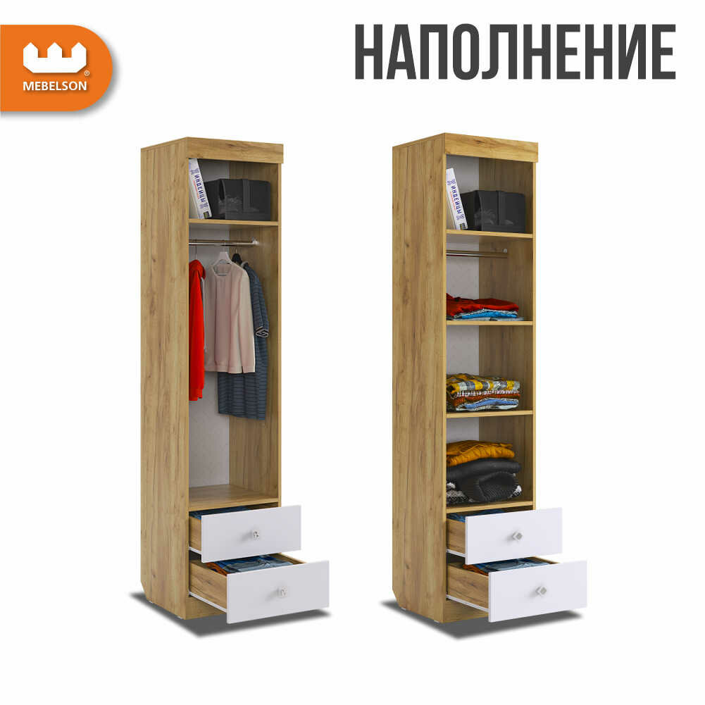 Шкаф распашной двухдверный "Форсаж", с ящиками и штангой, дуб крафт золотой/белый, 80*42*189,5 см., Mebelson