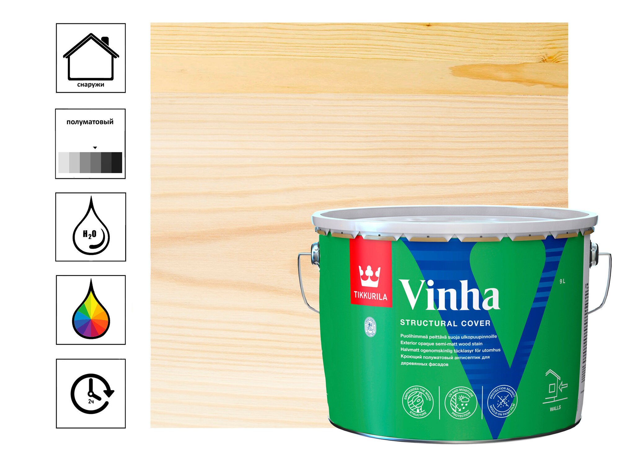 Tikkurila Vinha / Тиккурила Винха кроющий антисептик для древесины водорастворимый База С 9л