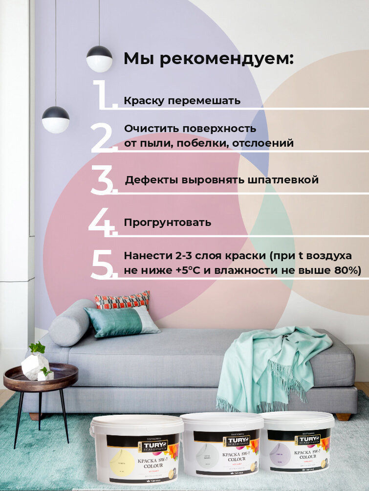 СохранитьКраска для обоев и стен моющаяся TURY SW-7 Colour матовая, без запаха, цвет Ваниль, 2.4 кг интересное: