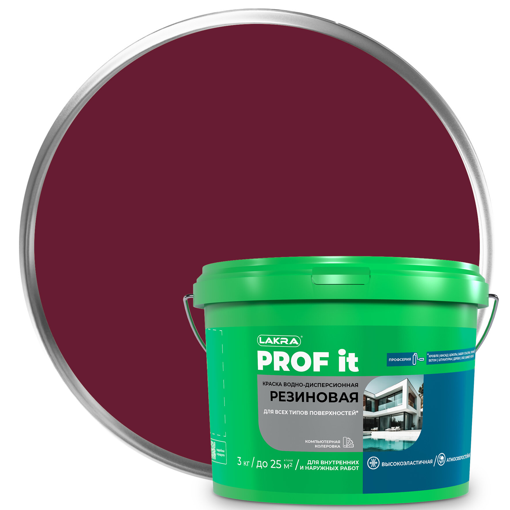 СохранитьКраска Лакра PROF IT. Резиновая. Винно-красная RAL 3005. 3 кг. Для всех типов поверхностей. интересное: