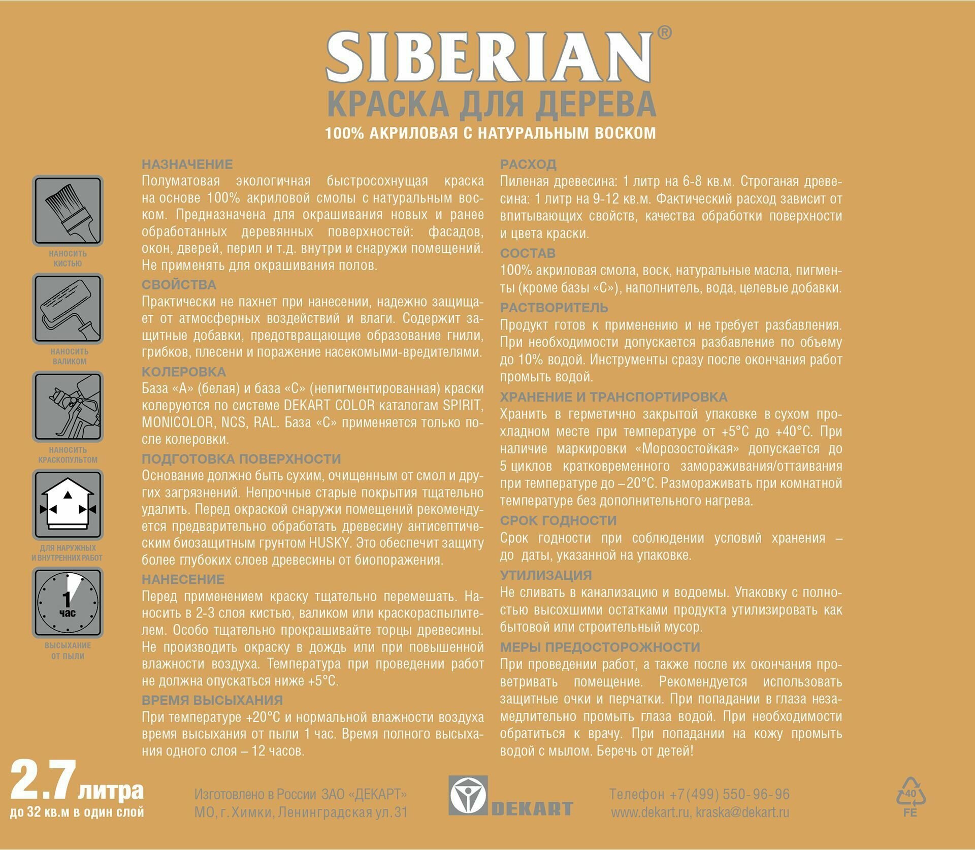 Купить Краска для колеровки по дереву Siberian акриловая прозрачная база С 2.7 л