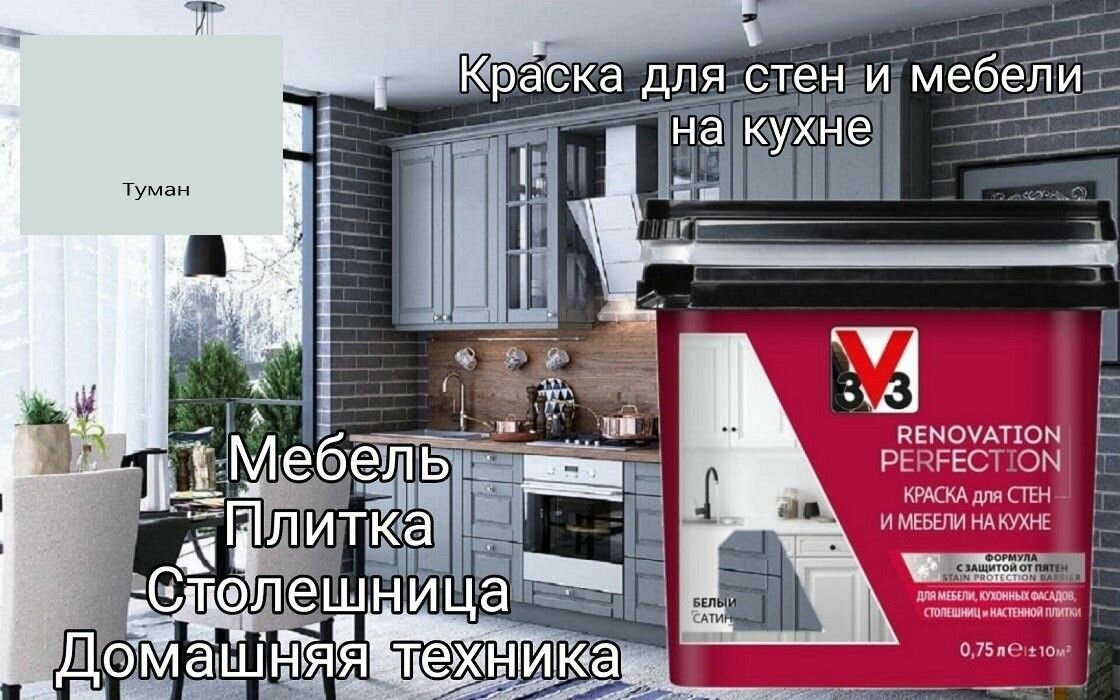 Краска для стен и мебели на кухне V33 RENOVATION PERFECTION