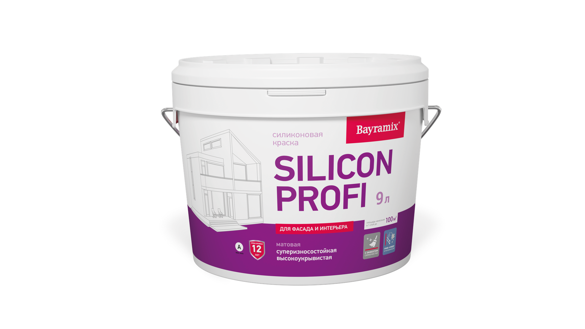 Краска силиконовая для фасадов и интерьеров Bayramix Silicon Profi матовая (9л) А (белая и под колеровку)
