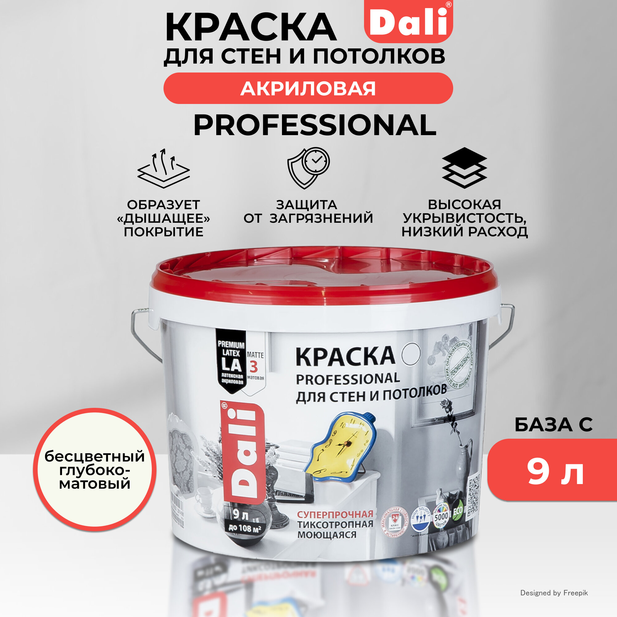Dali Professional краска для стен и потолков акриловая латексная 9 л C бесцветная