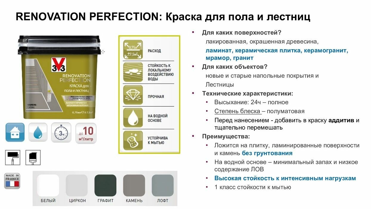V33 краска для пола И лестниц RENOVATION PERFECTION 0,75л Графит