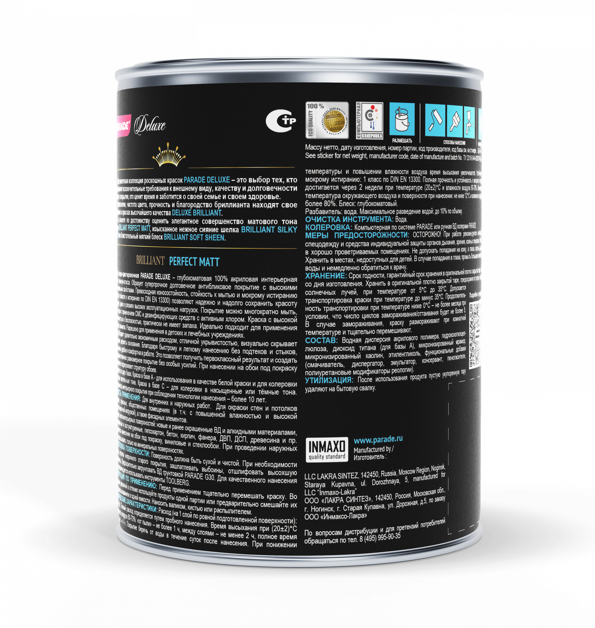 Краска интерьерная PARADE DELUXE Brilliant perfect matt База С 0,9л Россия
