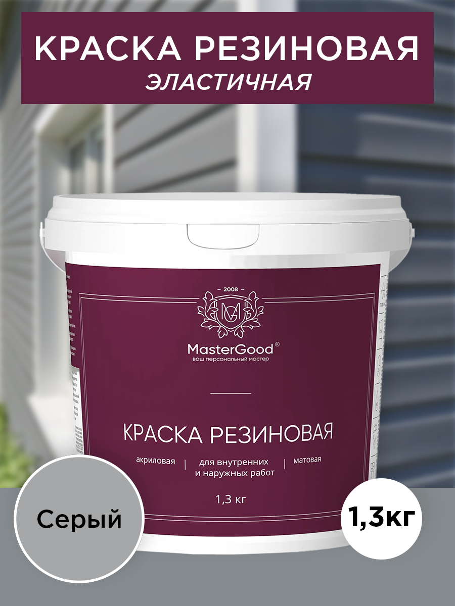 Купить MasterGood Краска резиновая моющаяся акриловая для помещений с повышенной влажностью Серый (светлый RAL 7047) (1,3 кг) / Для стен, окон и фасадов