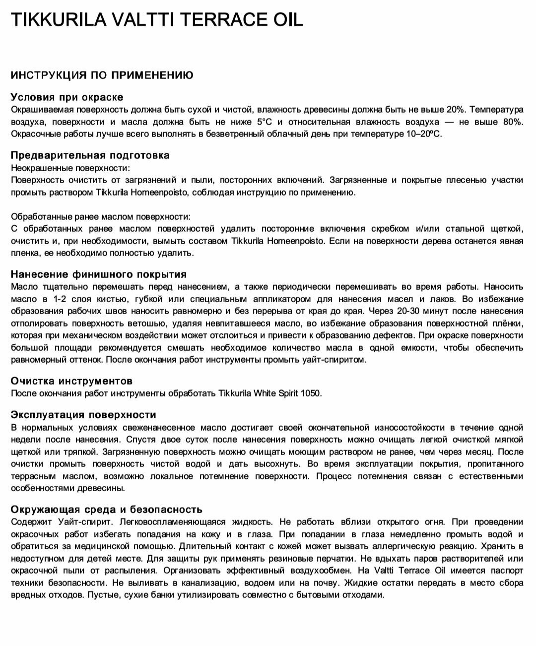 TIKKURILA VALTTI TERRACE OIL масло для терасс, бесцветное (0,9л)