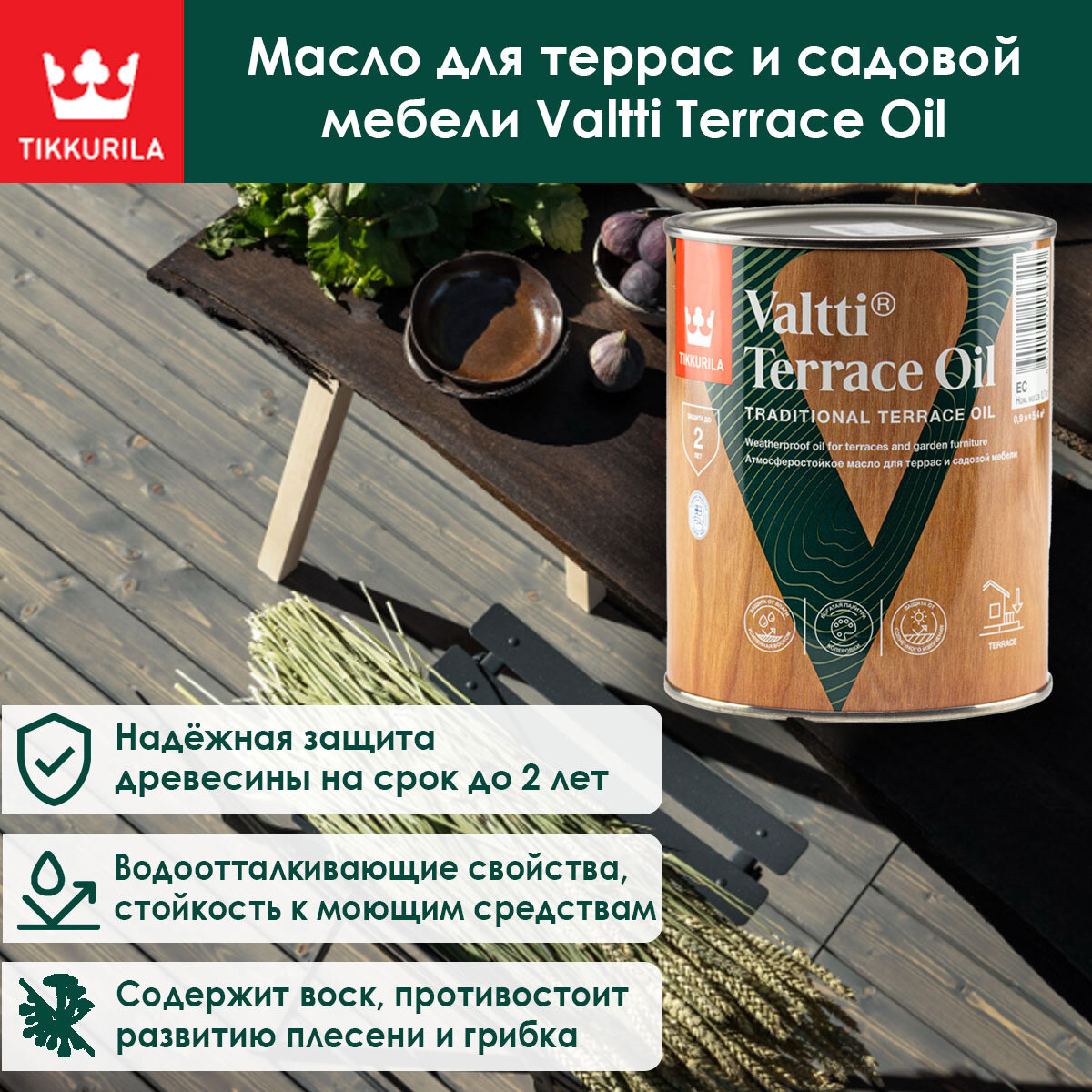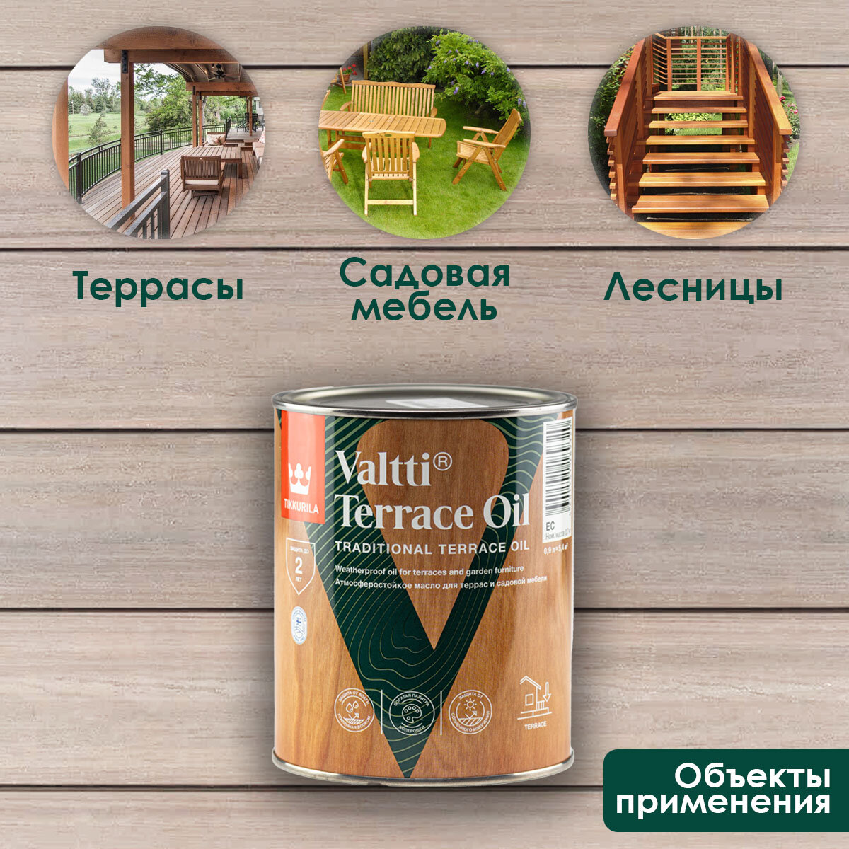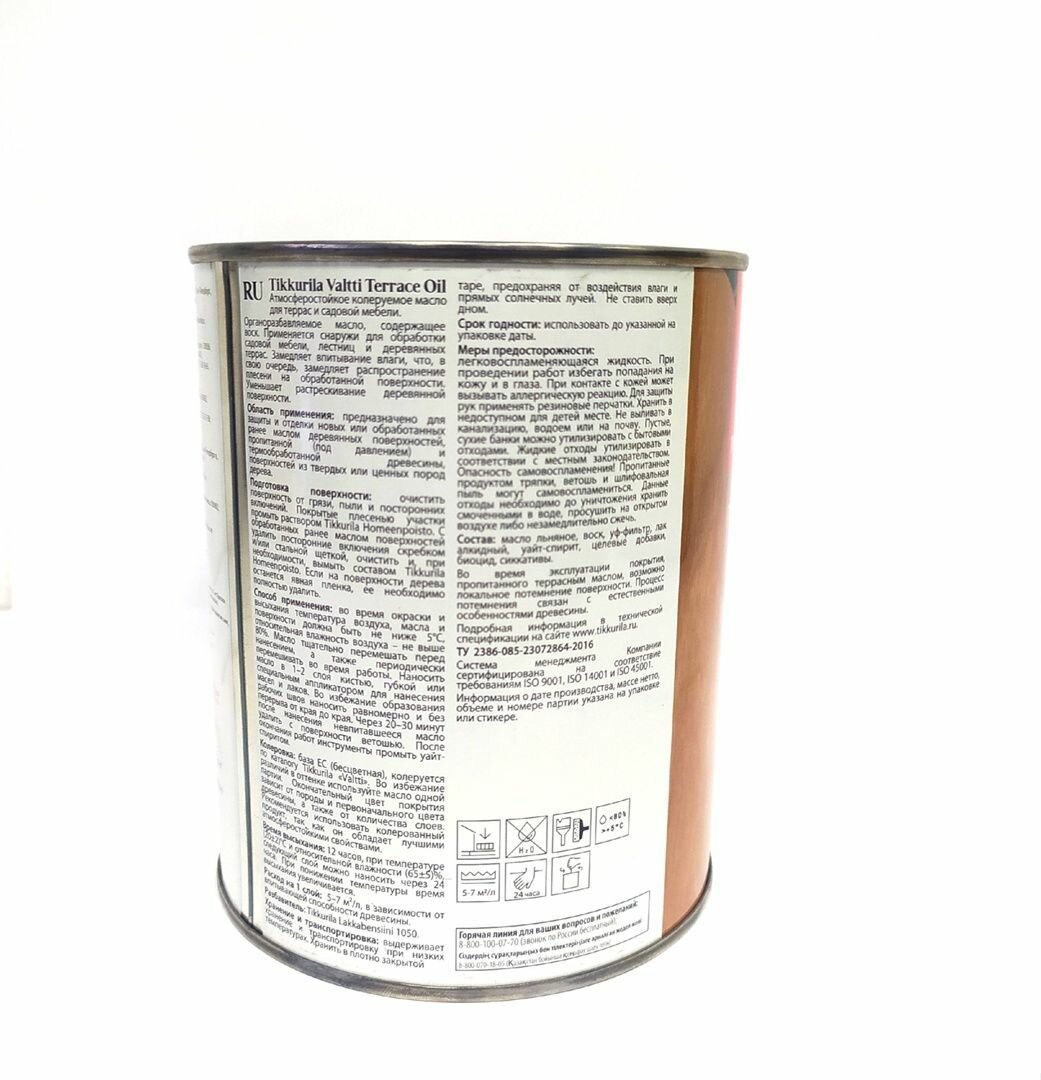 Tikkurila Valtti Terrace OIL масло для террас и садовой мебели, бесцветный 0,9 51841 .