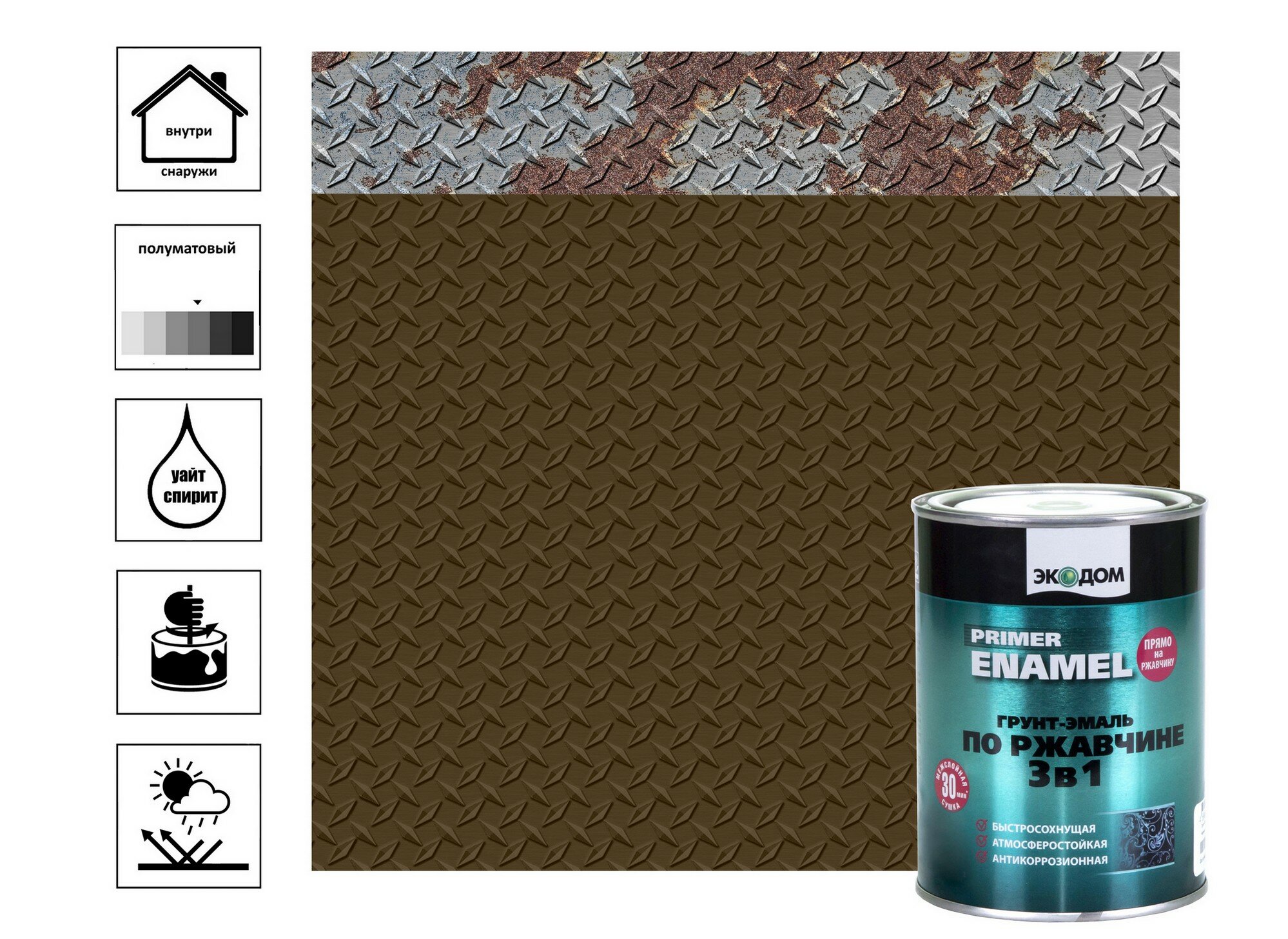 Экодом грунт-эмаль по ржавчине 3в1 (полуматовая, коричневый, RAL 8017, 10 кг)