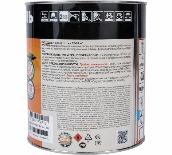 Из минусов - при окраске кистью какой-то огромный расход, у меня вышел в 2 раза выше чем максимальный из инструкции. Там куда должно было хватить 1,5 банки, не хватило двух. Рекомендовал бы купить преобразователь ржавчины отдельно и обработать после минимальной механической очисткой перед окраской, благо он стоит копейки, тогда и расход будет меньше и держаться будет лучше |