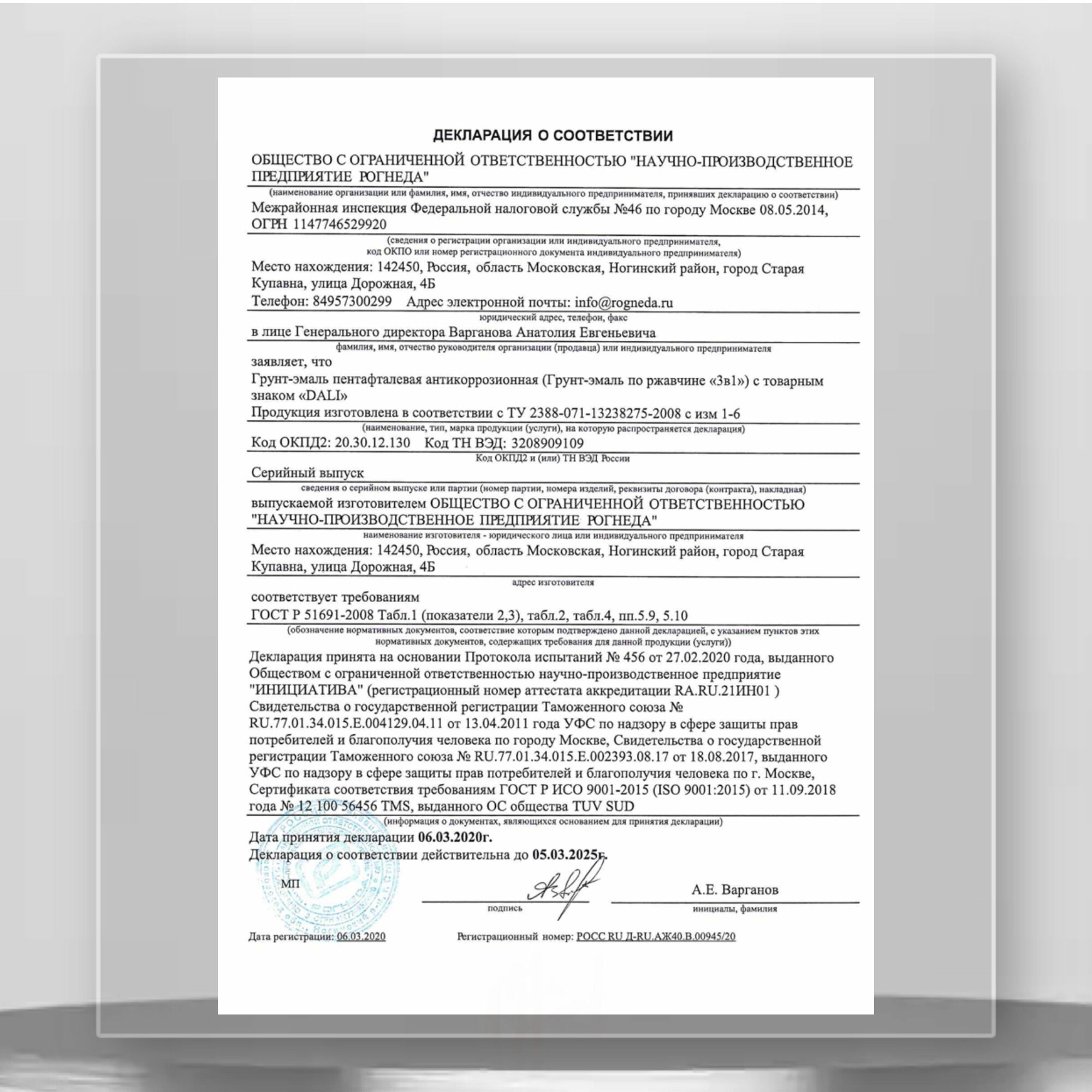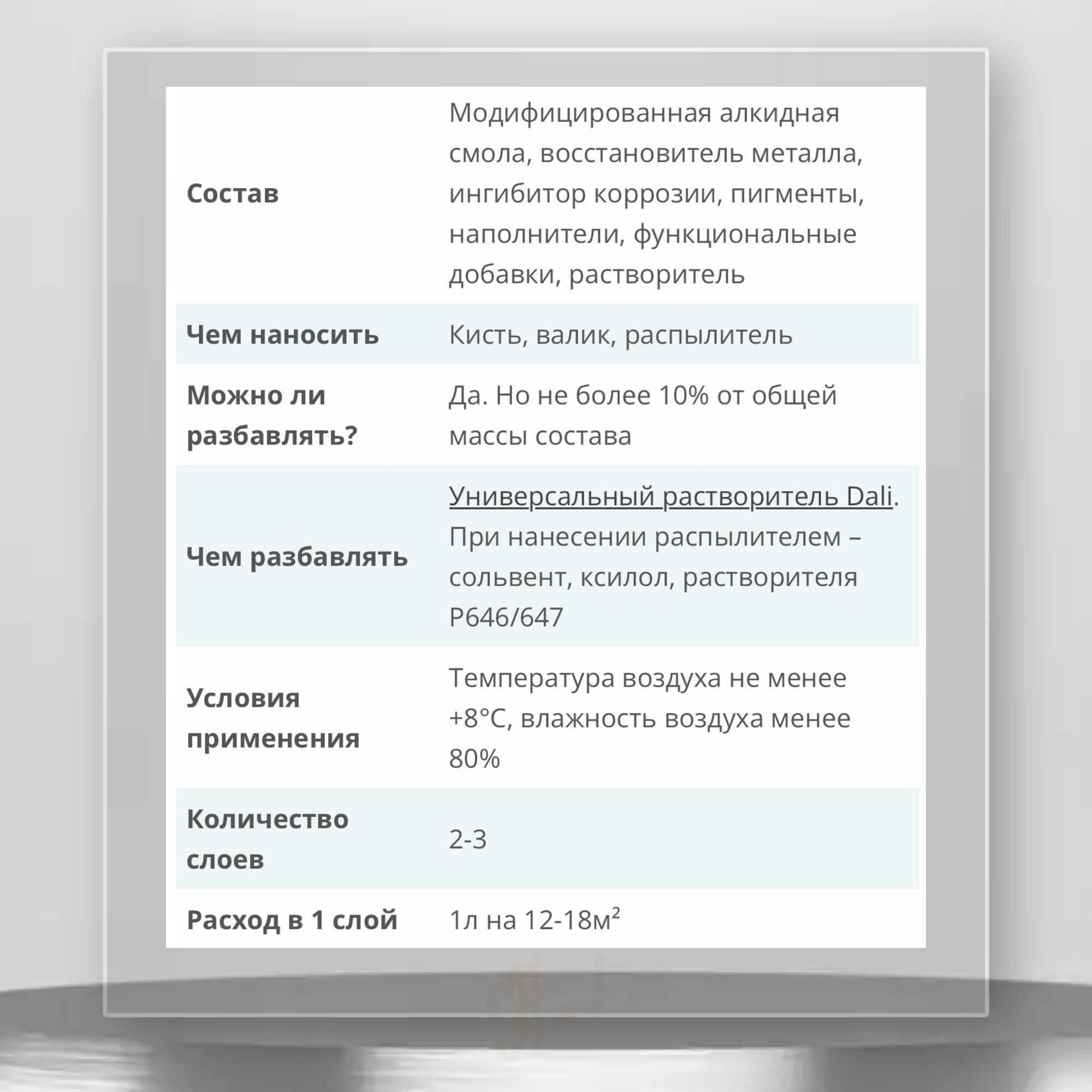 Dali / Дали Грунт-эмаль по ржавчине 3 в 1 гладкая алкидная RAL 9006 Серебристый алюминий 10л