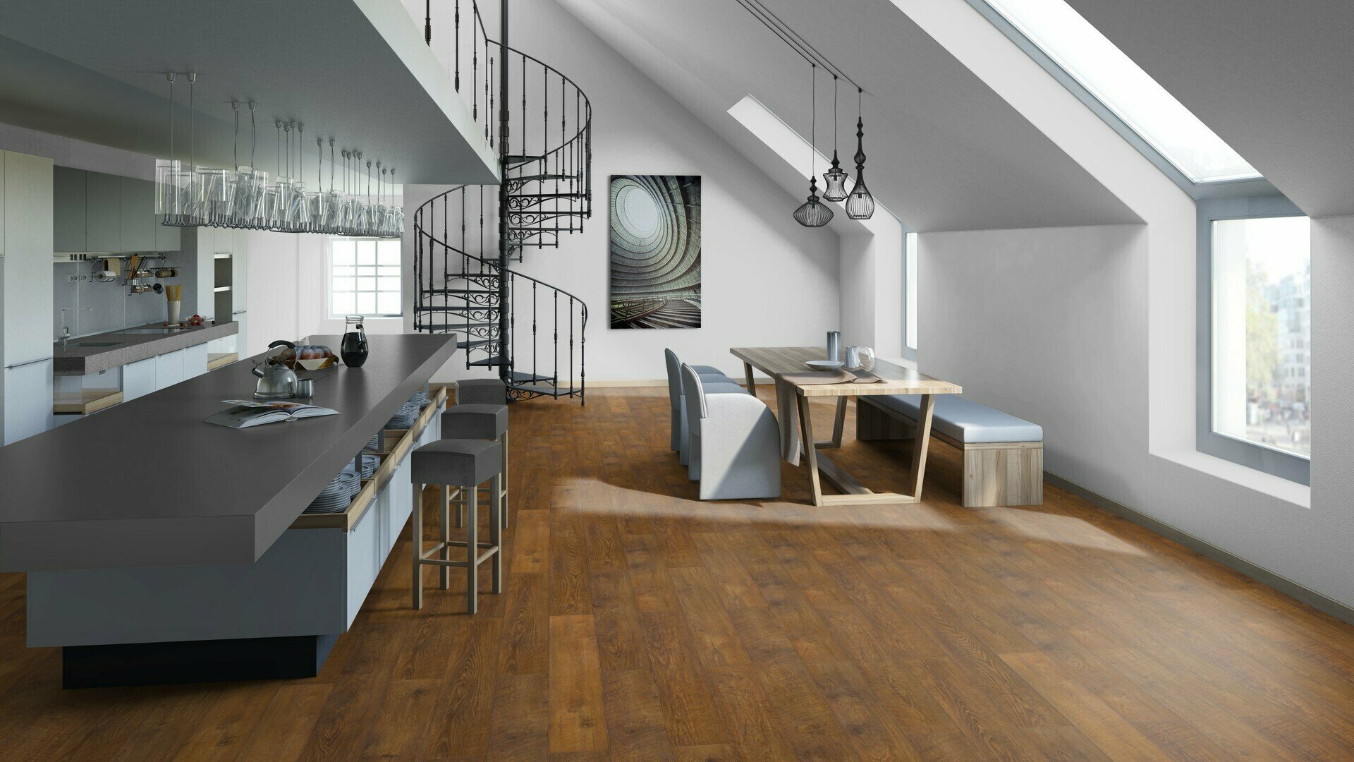 | Плюсы: | Ламинат в интерьере выглядит роскошно, работники говорят, что очень легко с ним работать |