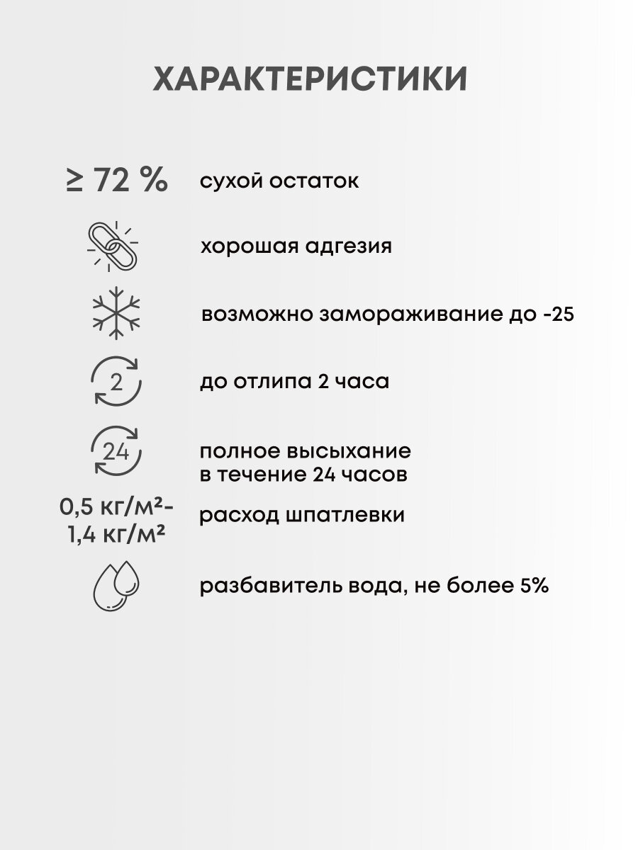 | Минусы: | Переизбыток акриловой смолы в составе. Даёт "платмассовую"поверхность невысокой прочности. |