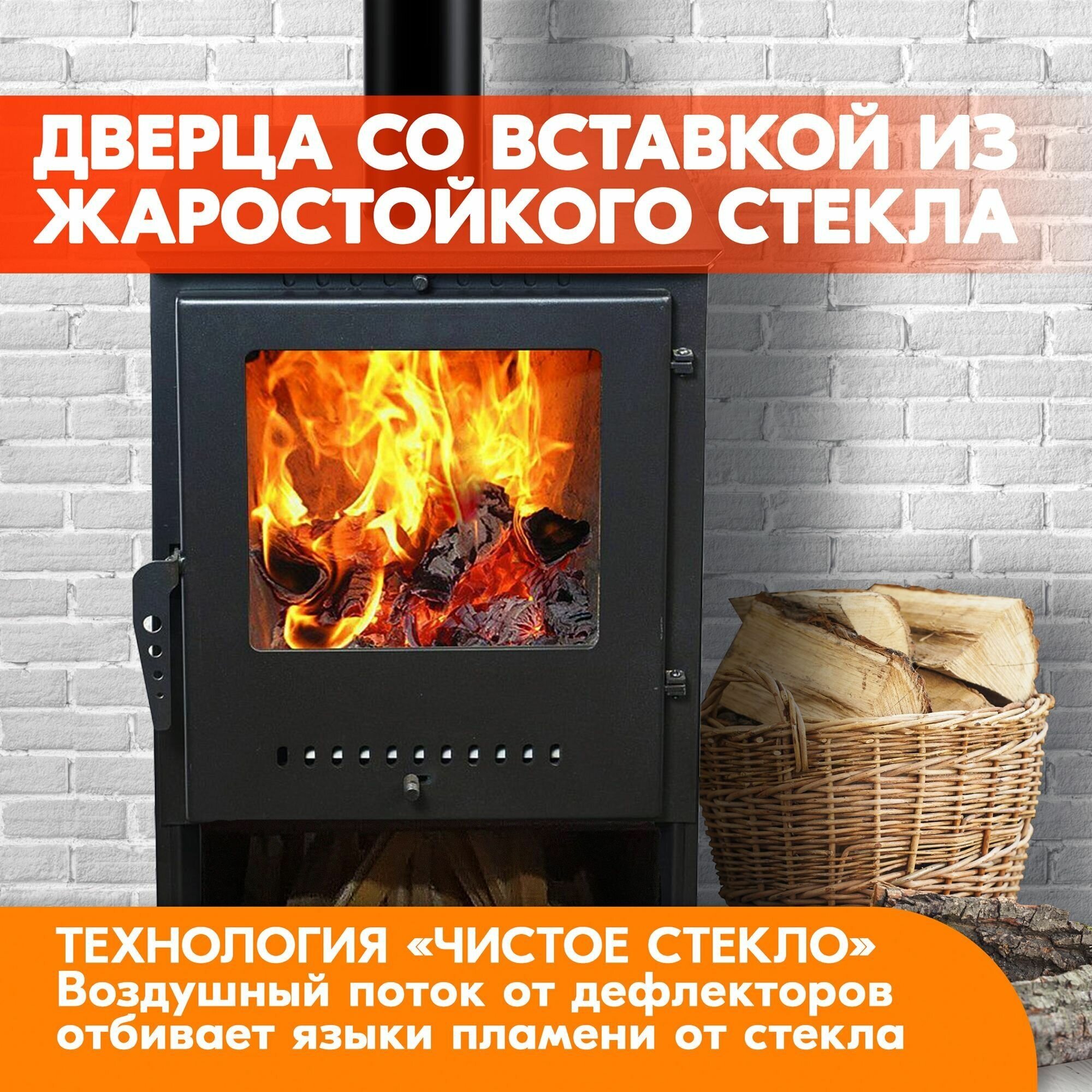 Печь -камин дровяная отопительная Варвара " гармония 105 (Черный)" для дома и дачи, 9 кВт, 100 куб. м