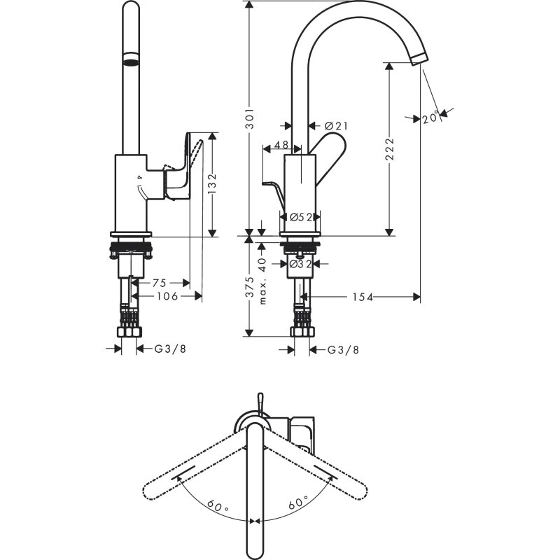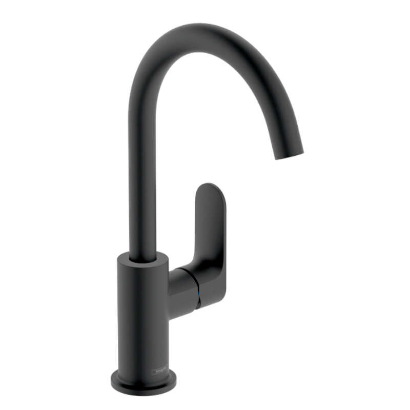Купить Смеситель для раковины Hansgrohe Rebris S со сливным гарнитуром, керамический картридж, черный матовый (72536670)