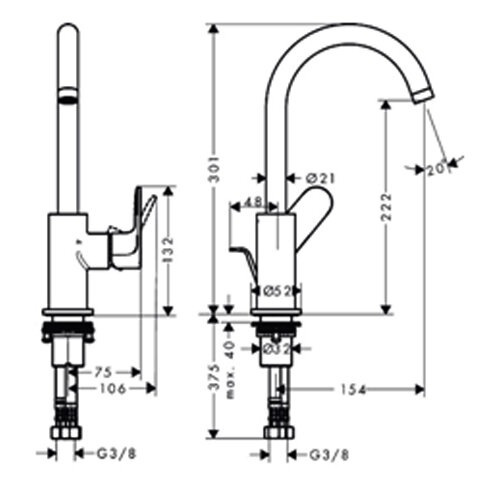 | Длина излива | 141 мм |