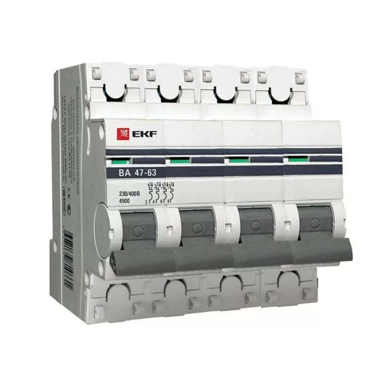 Выключатель автоматический, четырехполюсный ВА 47-63 4P 63А (С) 4,5kA EKF PROxima (1шт.) (mcb4763-4-63C-pro)