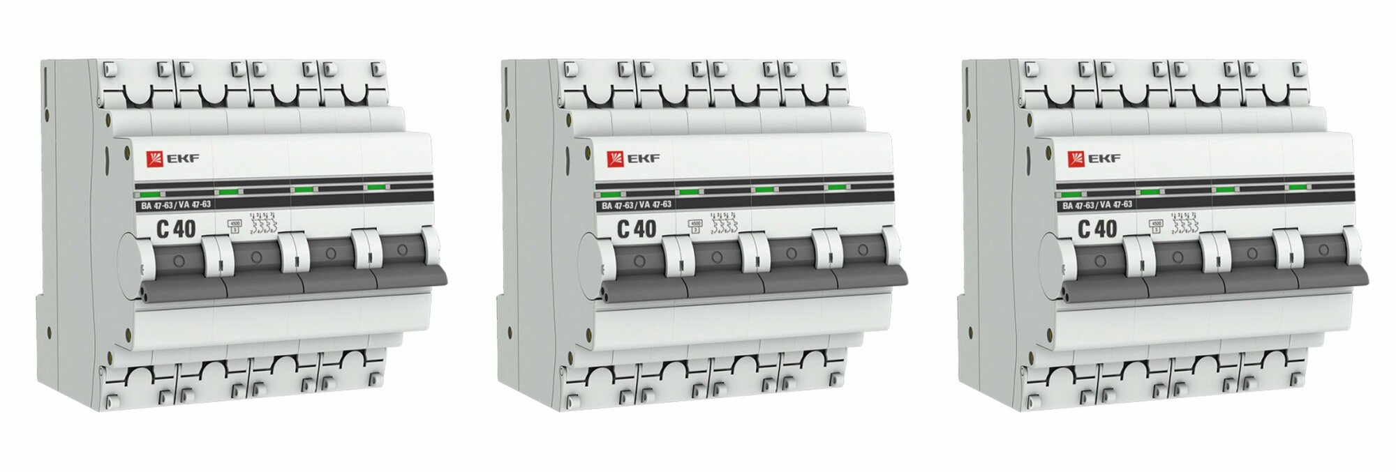 Купить Автоматический выключатель 4P 40А (C) 4,5kA ВА 47-63 EKF PROxima 3 штуки
