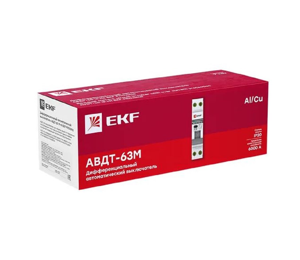 Дифференциальный автоматический выключатель EKF PROxima АВДТ-63М, 20А, С, 30мА, тип AС, 6кА