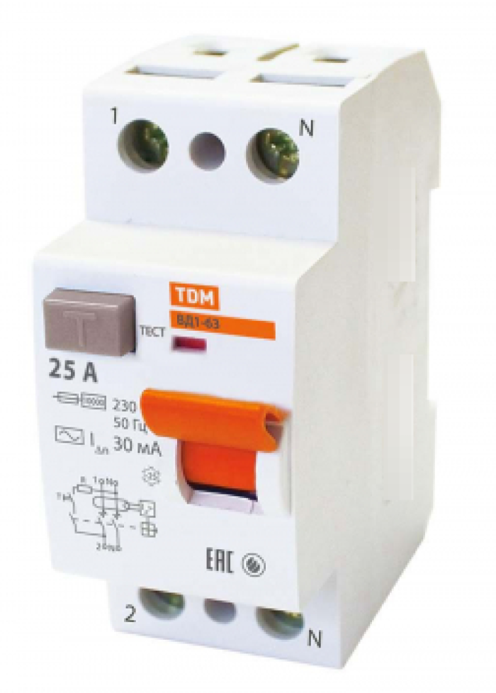 СохранитьУстройство защитного отключения TDM Electric / ТДМ Электрик ВД1-63 двухполюсный, в пластиковом корпусе, белый, 25A 30мА IP20 тип AC, SQ0203-0008 / УЗО интересное: