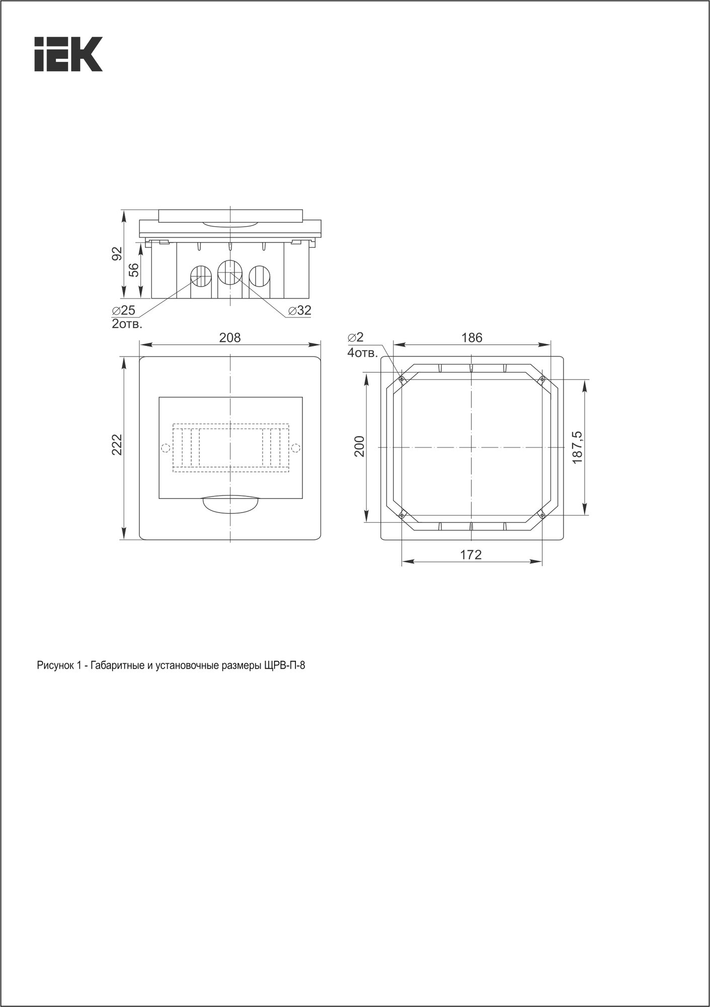 Щит распределительный IEK MKP12-V-08-40-20 ЩРВ-П-8 для установки модульных устройств встраиваемый 208мм 87мм 222мм 660B 8мод. пластик IP41 белый (упак.:1шт)