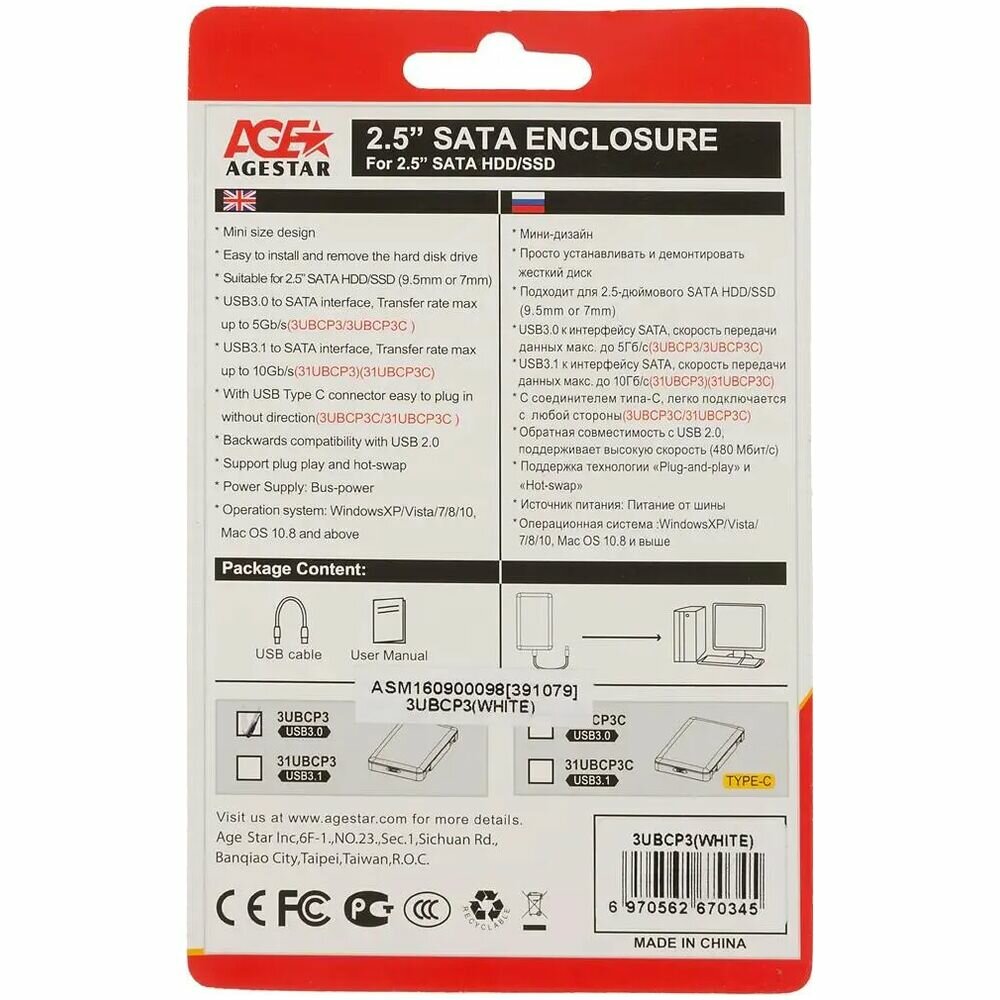 AgeStar (3UBCP3-White) (Внешний бокс для 2.5" Sata Hdd, Usb3.0)