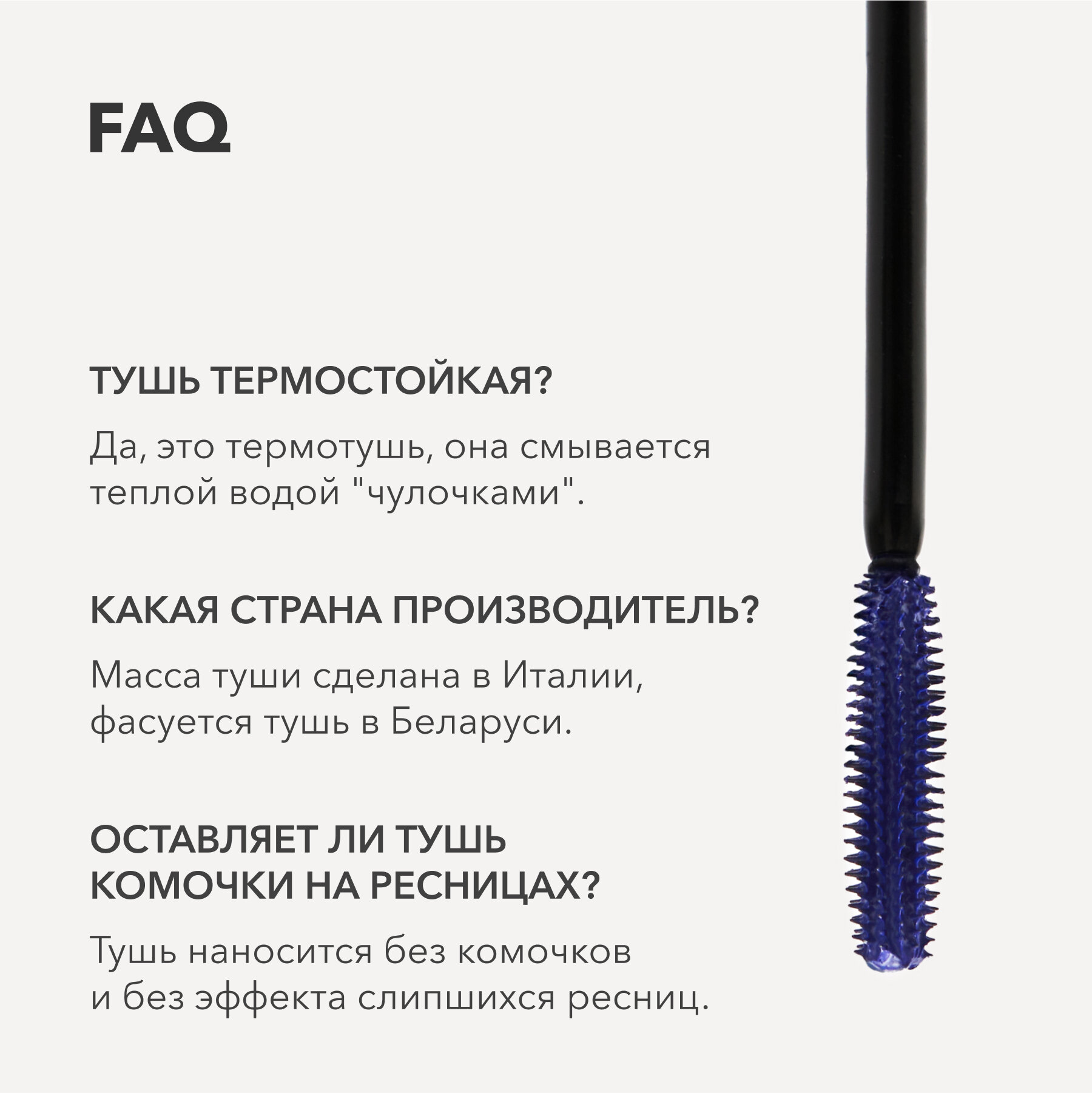 | Плюсы: | Хорошо ложится на ресницы, ровно и без комочков |