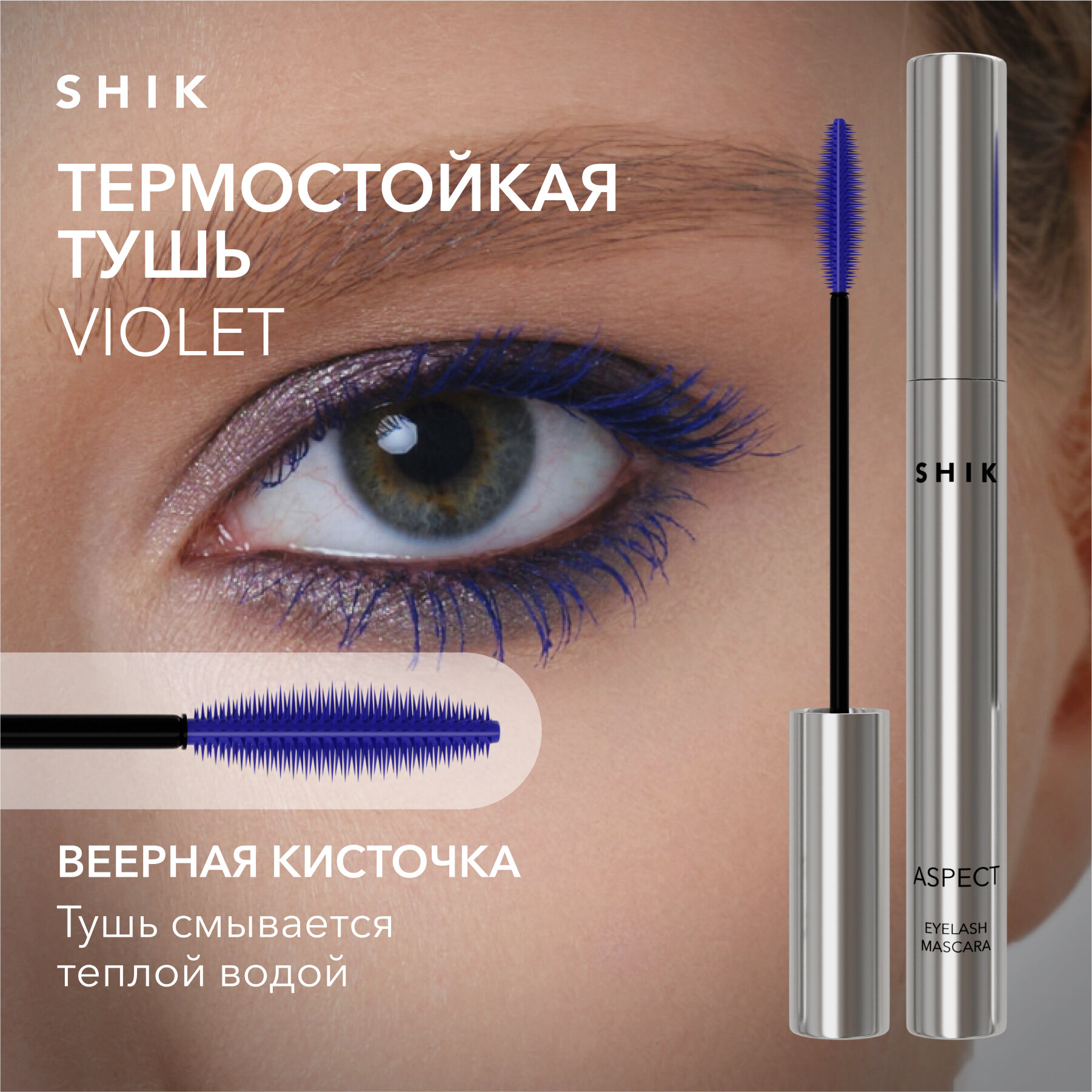 СохранитьТушь для ресниц термостойкая цветная сине-фиолетовая для объема XXL ASPECT VIOLET EYELASH MASCARA SHIK интересное:
