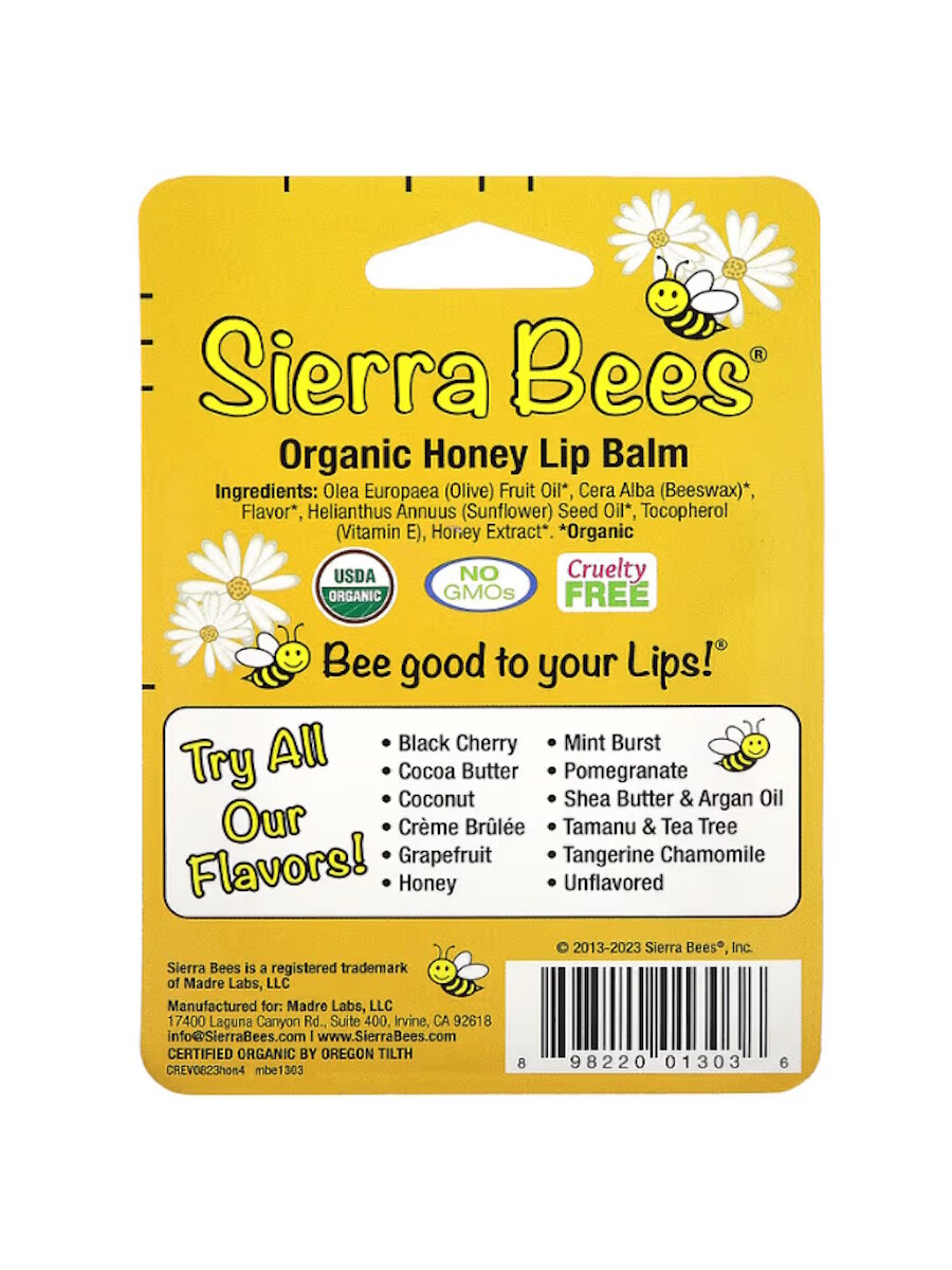 Sierra Bees, Органический бальзам для губ, с мёдом, 4 в упаковке