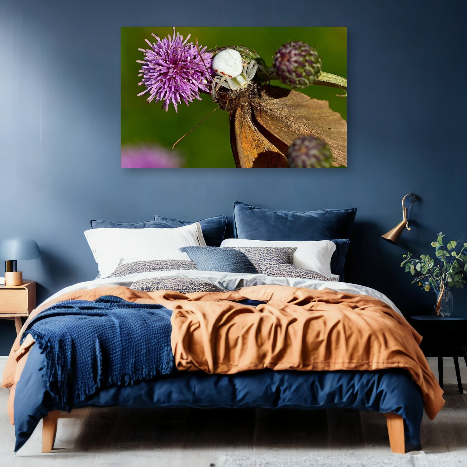 Картина на холсте "Крабовый паук, бабочка, добыча" на подрамнике 120х75 см. для интерьера интересное: