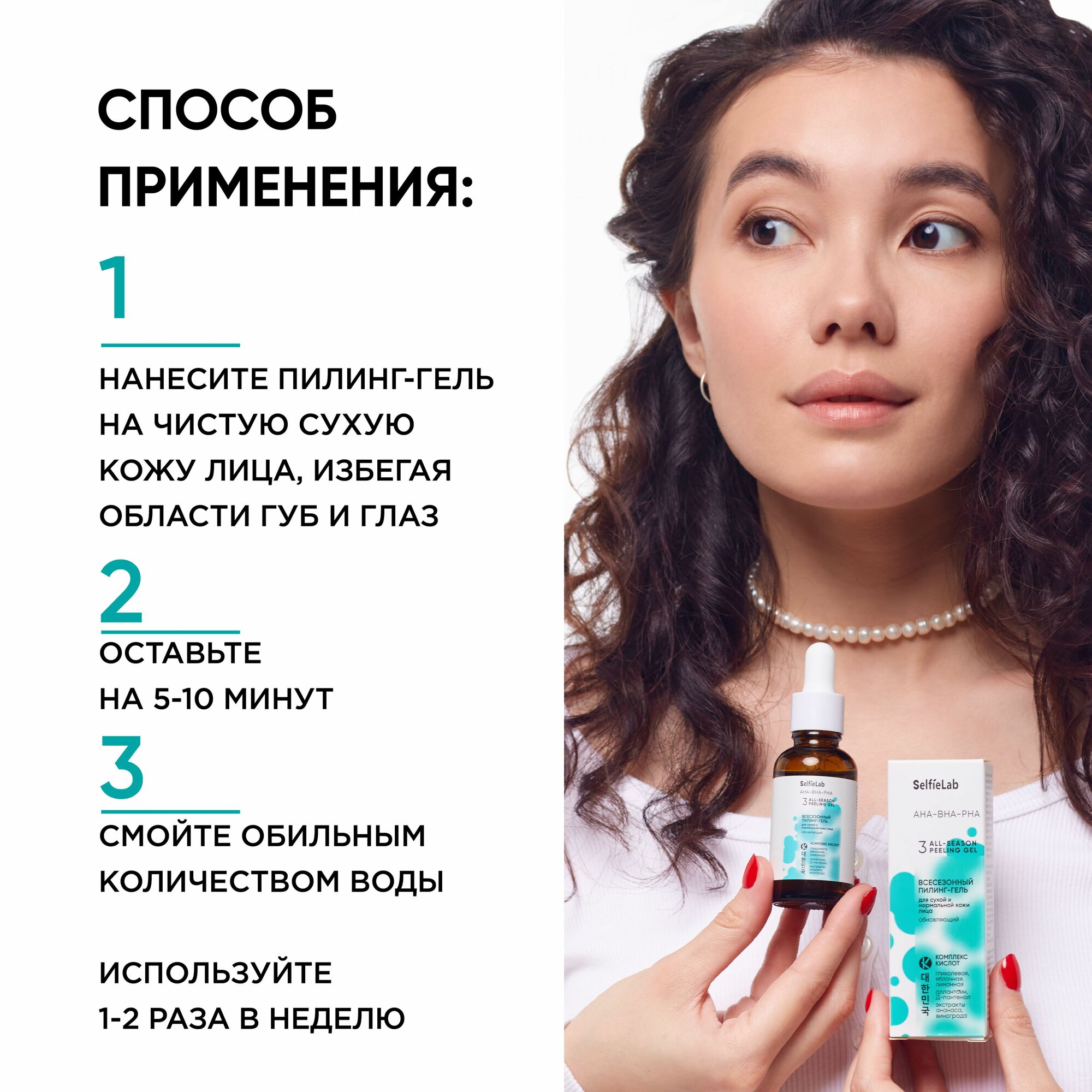 Купить SelfieLab Всесезонный пилинг-гель для лица AHA-BHA-PHA для сухой и нормальной кожи, обновляющий, 30 мл