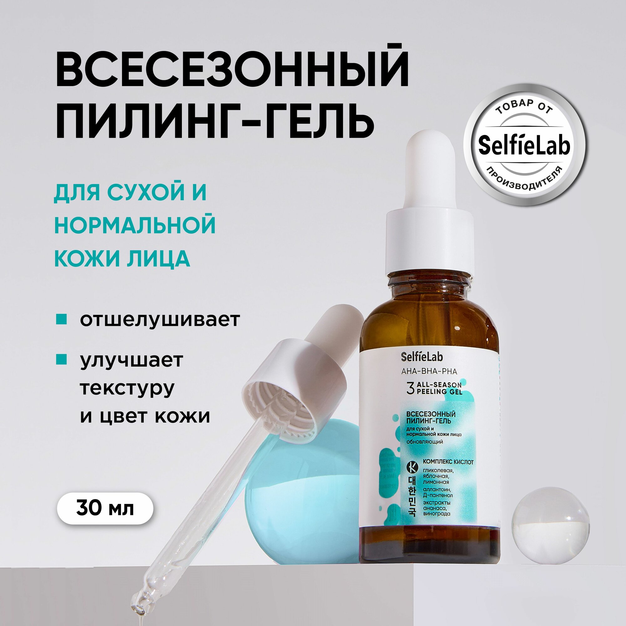СохранитьSelfieLab Всесезонный пилинг-гель для лица AHA-BHA-PHA для сухой и нормальной кожи, обновляющий, 30 мл интересное: