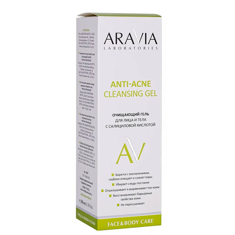 Купить Aravia Laboratories Очищающий гель для лица и тела с салициловой кислотой Anti-Acne Cleansing Gel 200 мл 1 шт