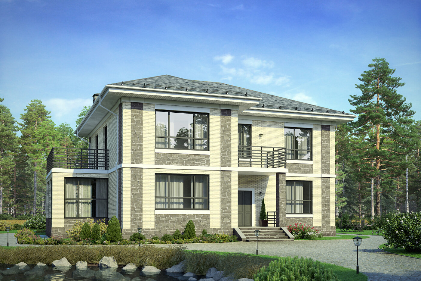 40-40GL-Catalog-Plans - Проект двухэтажного дома из газобетона с террасой интересное: