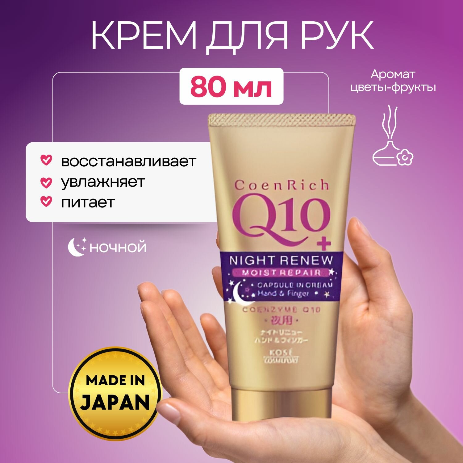 Крем для рук Coen Rich Q10 Night Renew, ночной увлажняющий и восстанавливающий крем для рук с коэнзимом Q10, с фруктово-цветочным ароматом, KOSE, 80г