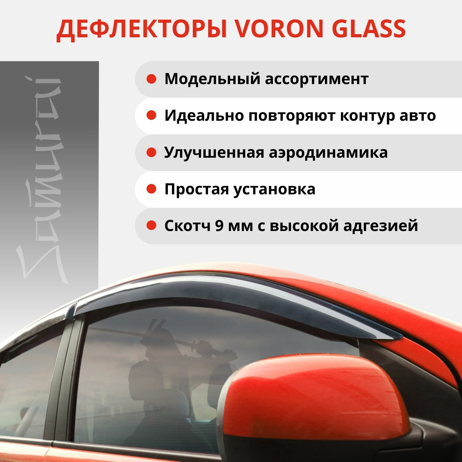 Дефлекторы окон /ветровики/ неломающиеся Voron Glass серия Samurai для Lada / ВАЗ 2105-2107 1980-2012 /седан /накладные /к-т 4шт/